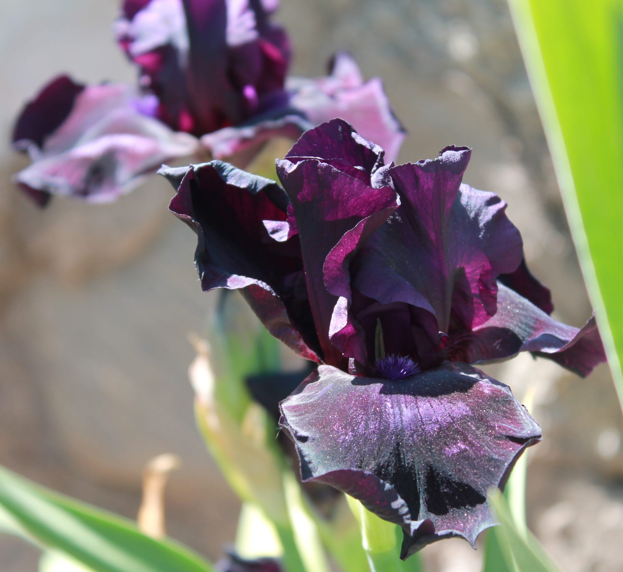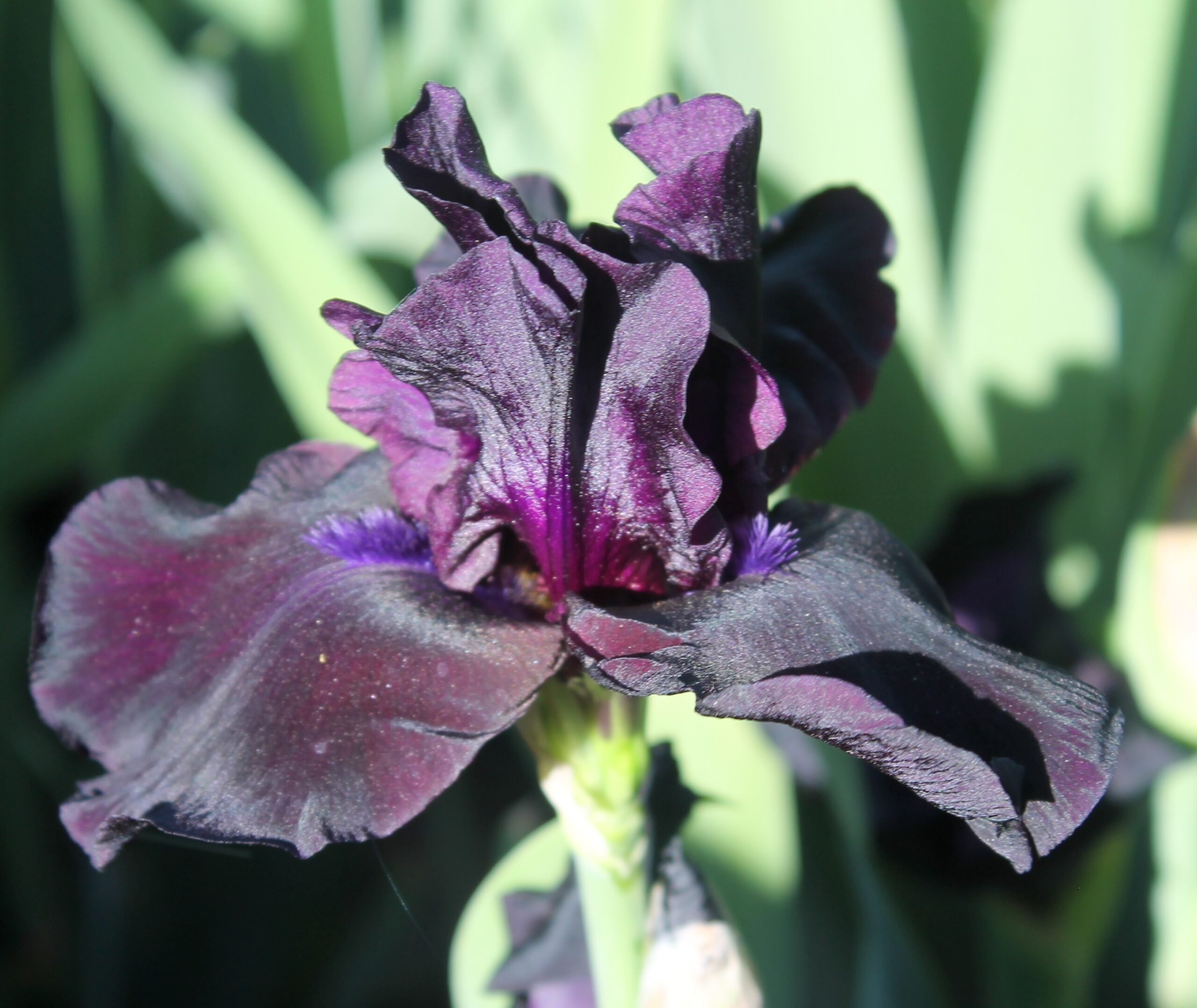 Iris alto barbudo de color unico negro y barbas negras.