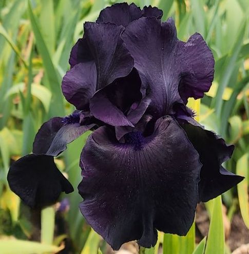 Iris alto barbudo de color unico negro con barbas negras oscuras.