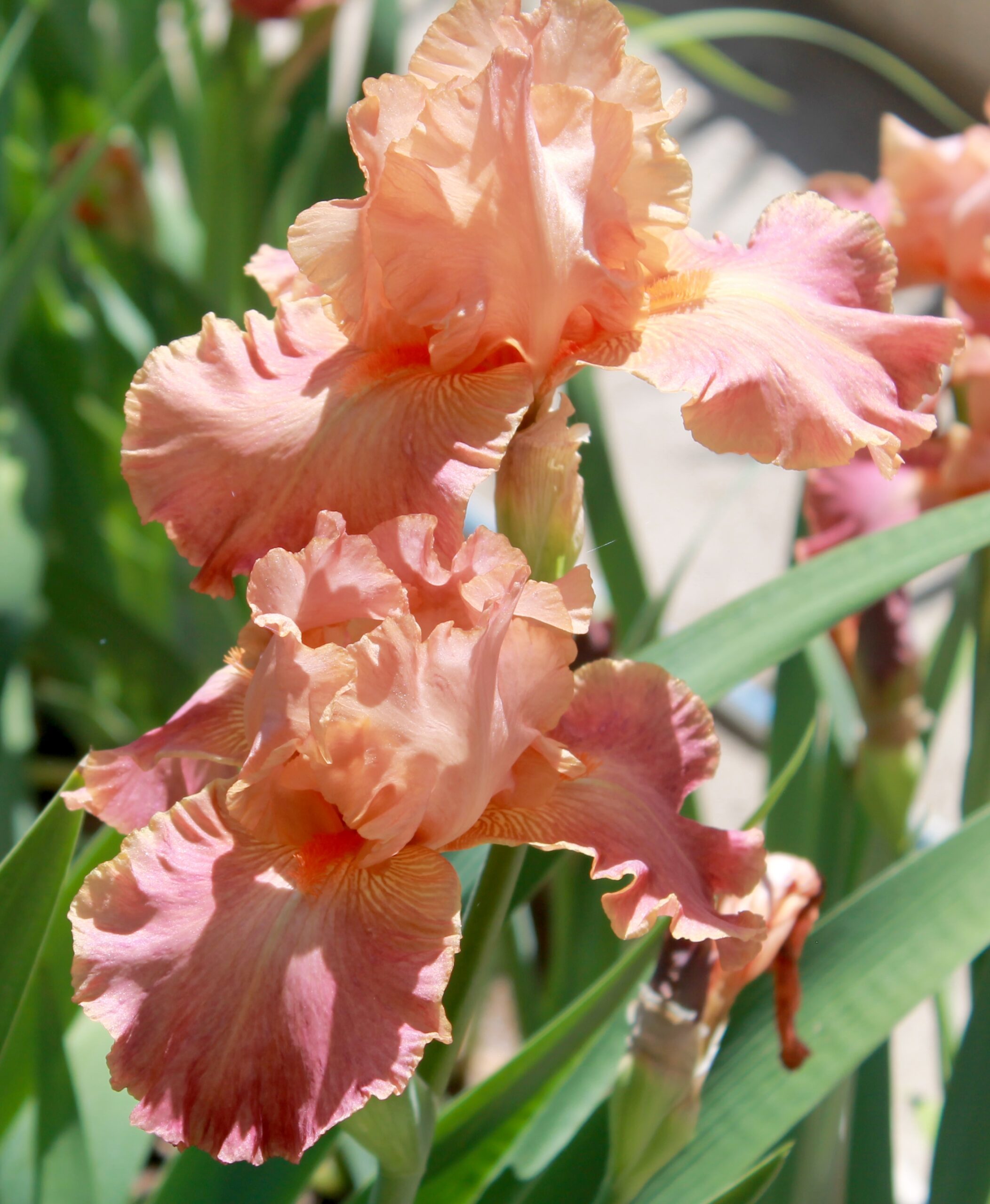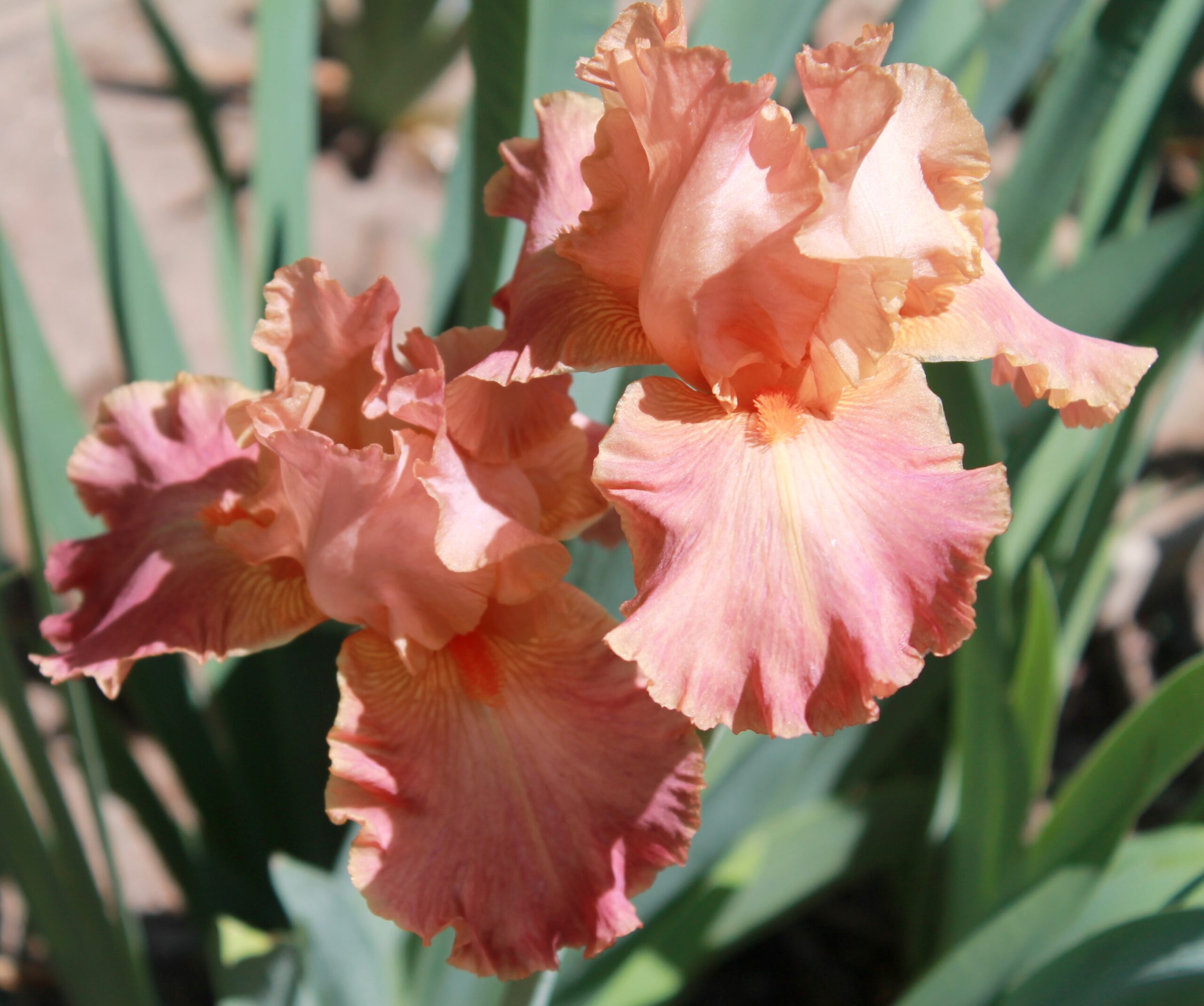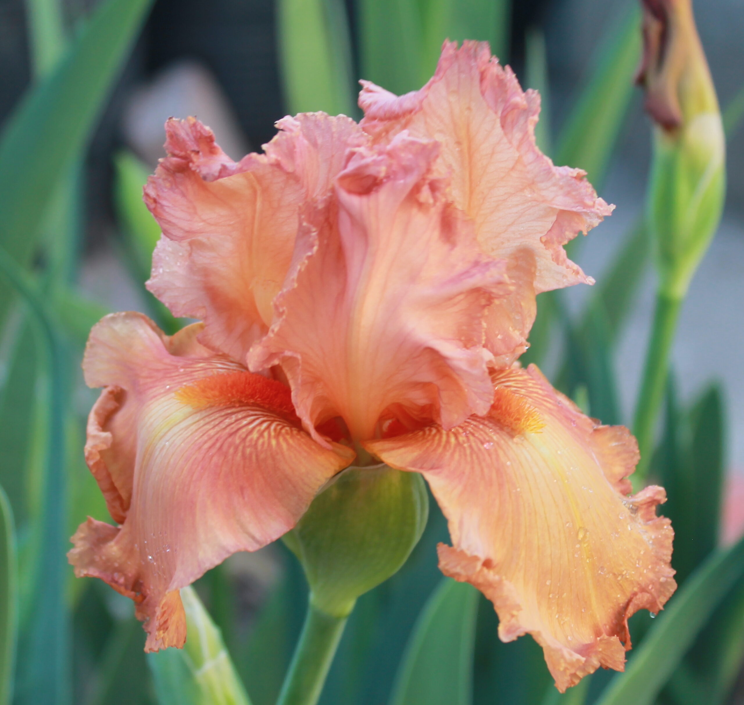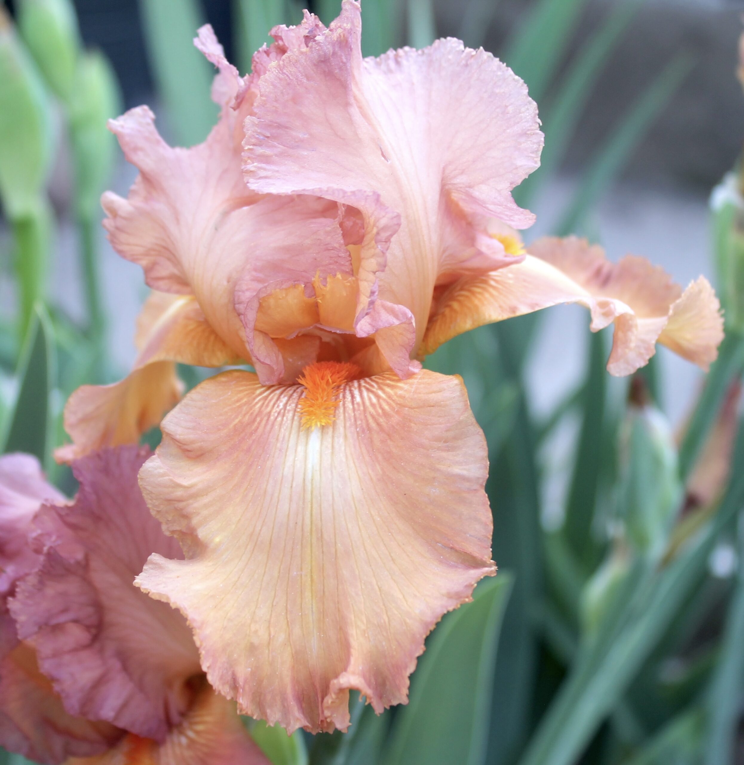 Iris alto barbudo histórico de color único naranja española con barbas tonos mandarina.